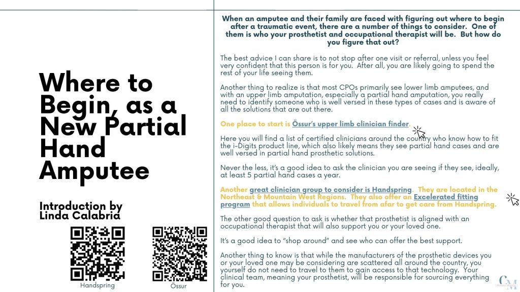 While awareness is growing, there are still some medical professionals and individuals with limb difference who are not aware there are multiple functional prosthetic and surgical options available now that didn’t exist 5-10 years ago.